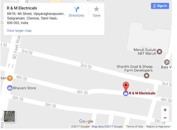 D.No-68/16,4th Street,Vijayaraghavapuram, Saligramam,Chennai-600 093.PH: 044-23650448 | Mobile : 91+9840365500 | Email : sales@rmelectricals.in